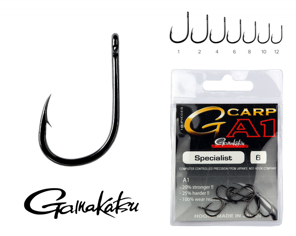 Gamakatsu 10 mit Widerhaken, mit Plättchen Schwarz Feederhaken 25db
