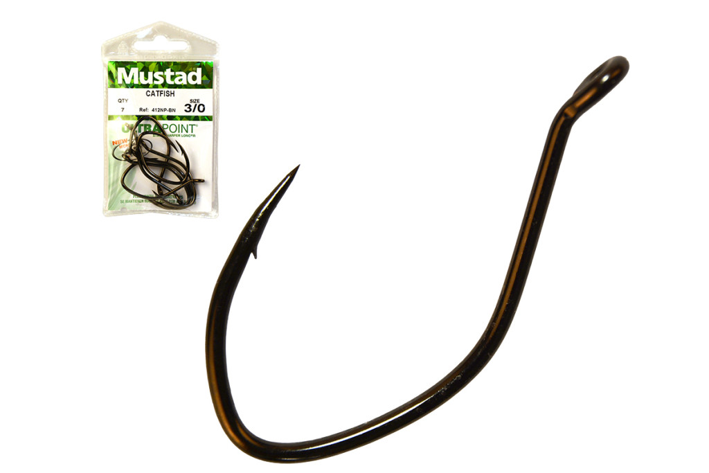 Inhalt der Packung:Mustad Ultra NP Single Catfish Black Nickel 5/0 Öhr, Widerhaken 5 Stk.