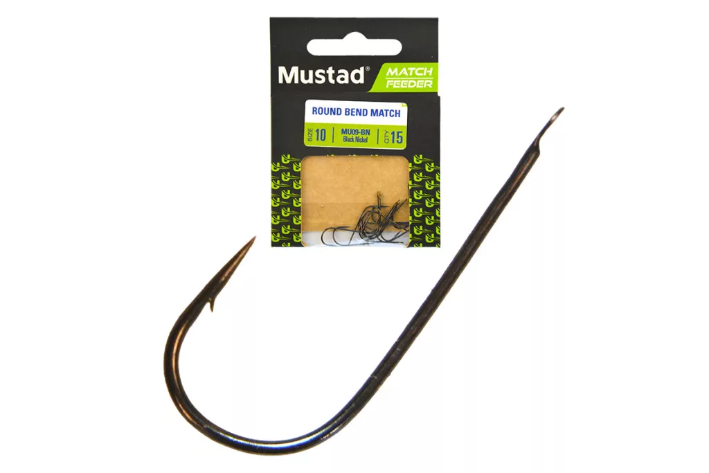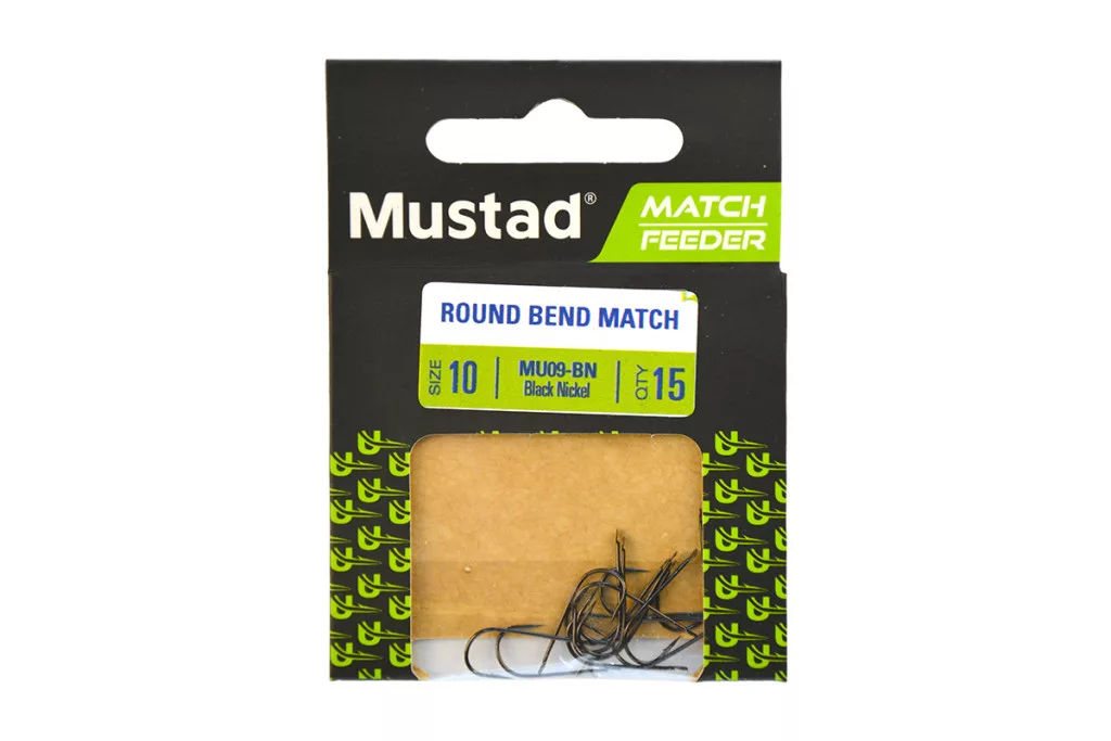 Inhalt des Pakets: Mustad Match Feeder Round Bend Match 12 Plättchen, Widerhakenhaken 15 Stk.