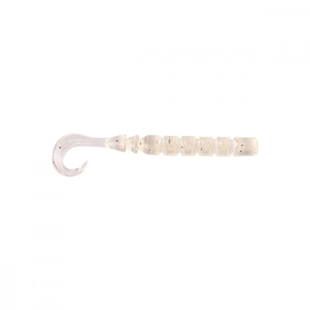 Mustad Aji Curly Tail 6,35cm Klar Leuchtend Silber Glitzer Plastikköder 12 Stk.