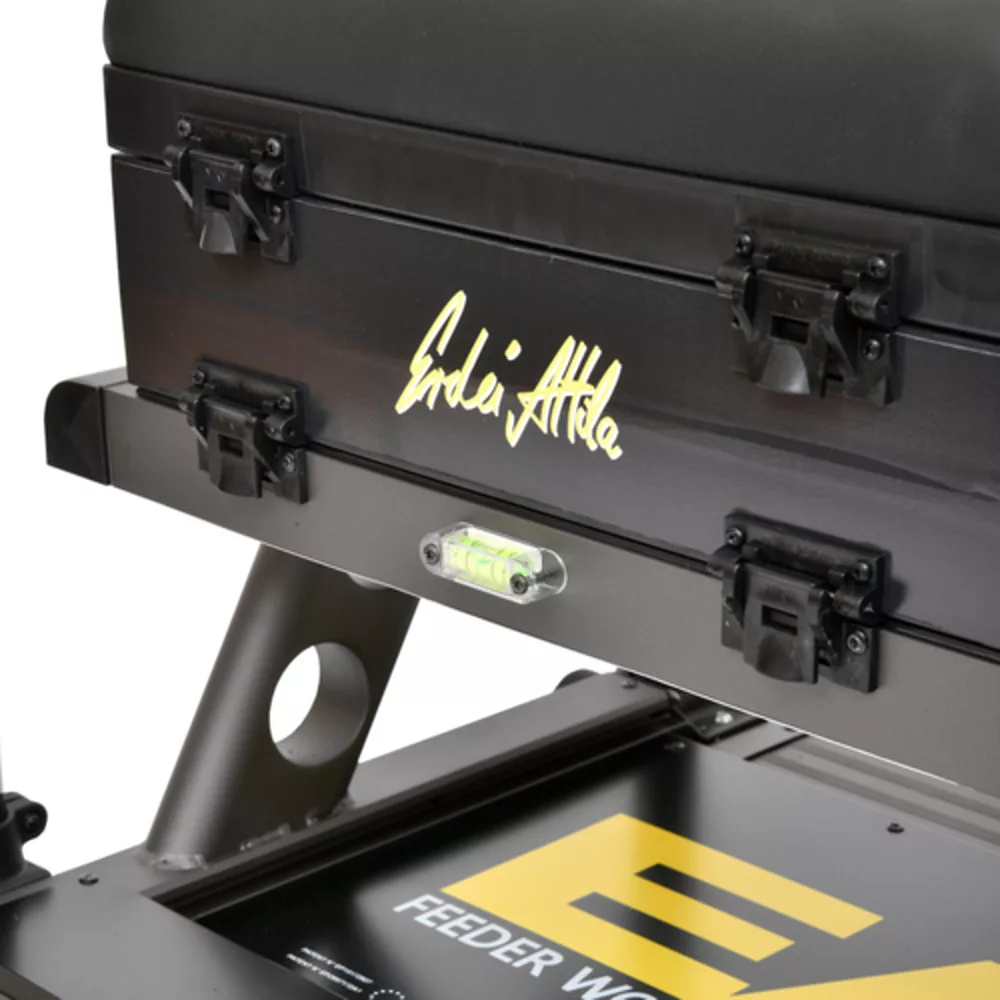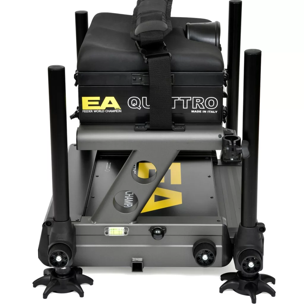 Einer der wichtigsten Vorteile des Produkts ist die Vier-Bein-Konstruktion, die dank der speziellen Rahmenkonstruktion auch an steilsten Uferhängen oder unebenen Uferbefestigungen einen felsenfesten Stand gewährleistet. Die Sitzfläche der Sitzkiepe ist ergonomisch und gepolstert, sodass sie auch bei langen, mehrstündigen Wettkämpfen oder Angeltagen bequem bleibt und Ermüdungserscheinungen im Rücken und in der Lendenwirbelsäule vorbeugt. Mit der eingebauten Wasserwaage lässt sich die Sitzkiepe blitzschnell ausrichten, was eine Grundvoraussetzung für präzises Angeln ist.
