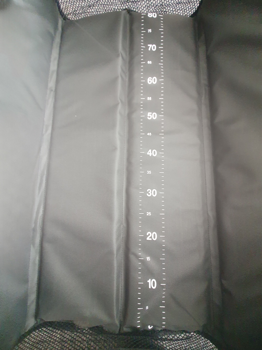 Auf der Matte befindet sich eine Skala bis 80 cm, dank derer Sie die gefangenen Fische leicht messen und fotografieren können.