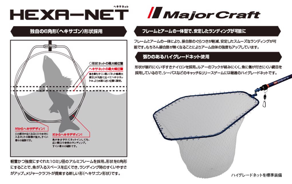 Die kompakte Version des Major Craft Hexa Net Kescherkopfs. Dank des gummierten Netzes werden Fischkörper kaum zerkratzt, selbst wenn der Fisch lebhaft ist. Die breite sechseckige Form bildet beim Keschern einen Rahmen. Empfohlen für leichtes Salzwasserfischen, wie z.B. auf Schwarzbarsch und an felsigen Küsten.