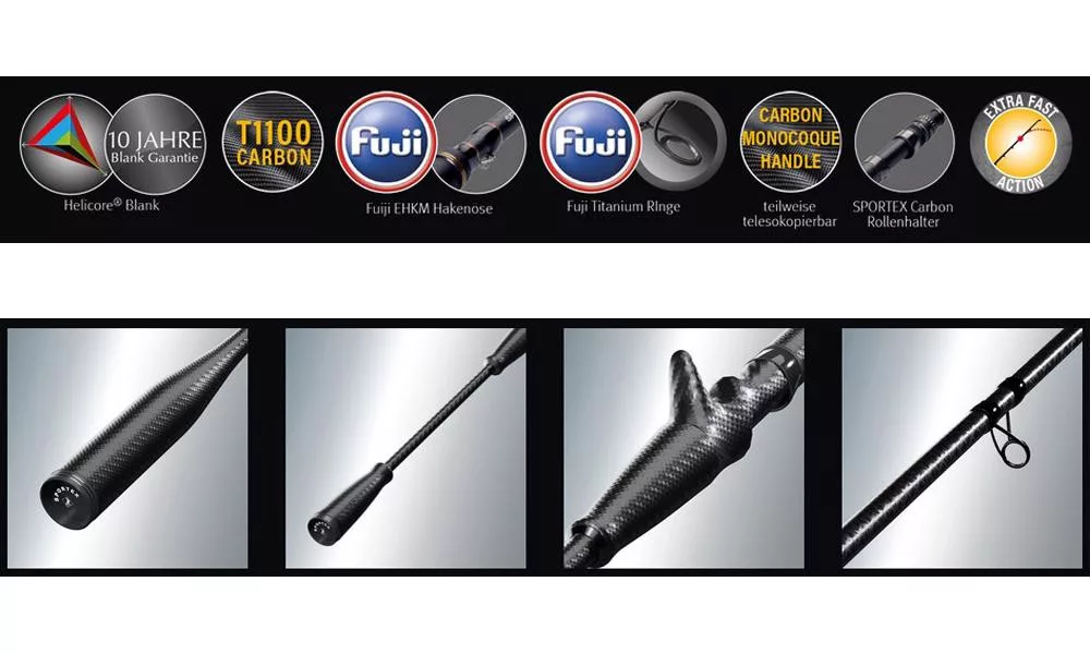 Die Sportex Nobun Spin 2,65m 40gr 2-teilige Spinnrute ist eine ausgezeichnete Wahl für alle, die kompromisslose Qualität und Leistung erwarten. Die optimale Länge von 2,65 Metern macht sie äußerst vielseitig, ermöglicht präzise Würfe vom Ufer und vom Boot aus und bietet gleichzeitig ausreichend Kraft für weite Würfe. Der 40-Gramm-Wurfgewichtsbereich ermöglicht den effektiven Einsatz einer breiten Palette von Kunstködern, Wobblern und Gummifischen, sodass Sie für jede Situation gerüstet sind.