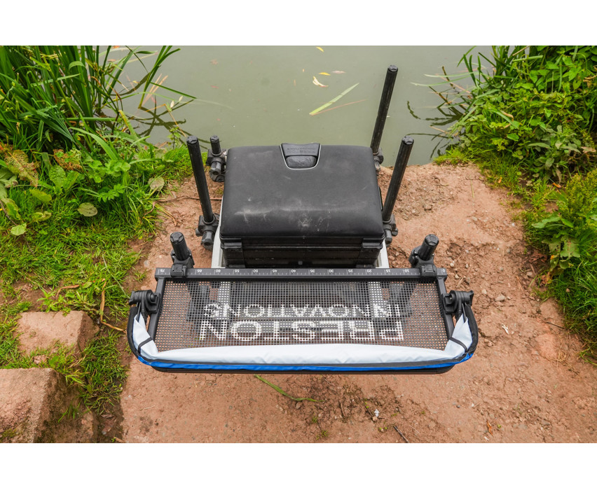 Der Boden des Trays besteht aus perforiertem Ventamesh-Blech, das eine ausreichende Belüftung für Köder und Futter gewährleistet, insbesondere bei warmem Wetter. Es dient auch als effektives Wasserabflusssystem, sodass Sie sich an regnerischen Tagen keine Sorgen machen müssen, dass Ihre Ausrüstung nass wird. Der zum Tray gehörende Sonnenschutz besteht aus leichtem, wasserdichtem Material, und seine helle Farbe reflektiert die Sonnenwärme, wodurch das Futter vor Überhitzung geschützt wird. Das SnapLok-System ermöglicht eine schnelle und stabile Befestigung des Sonnenschutzes oder bei Bedarf ein einfaches Entfernen.