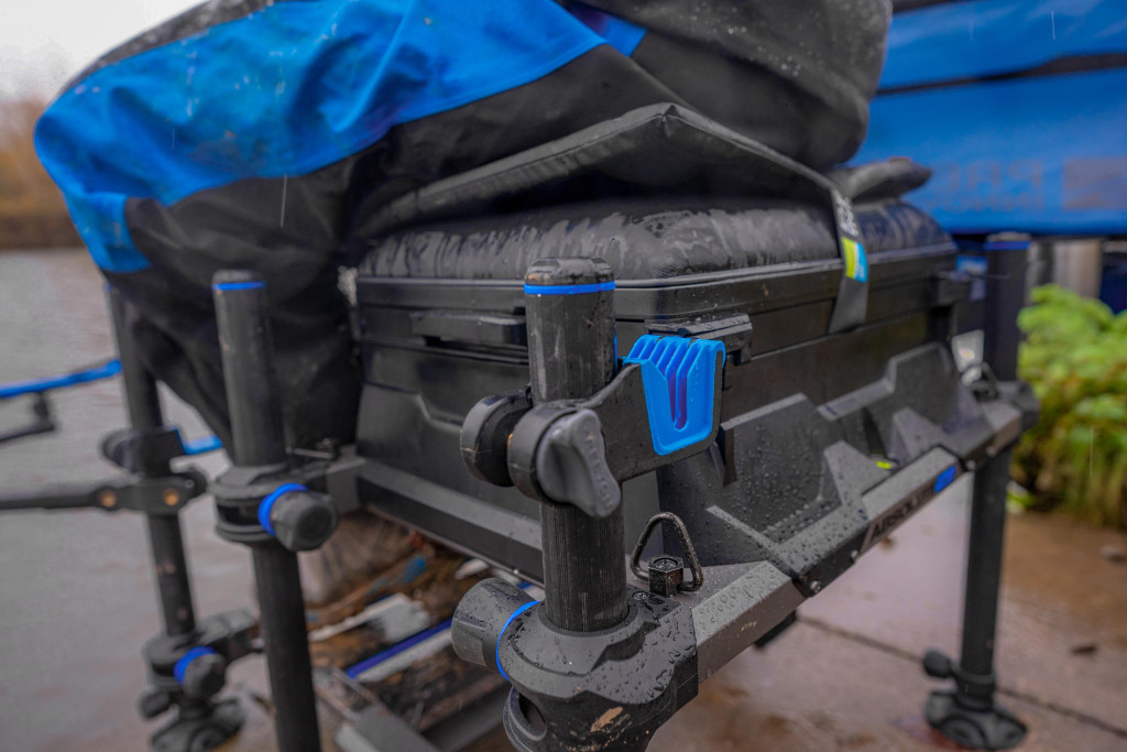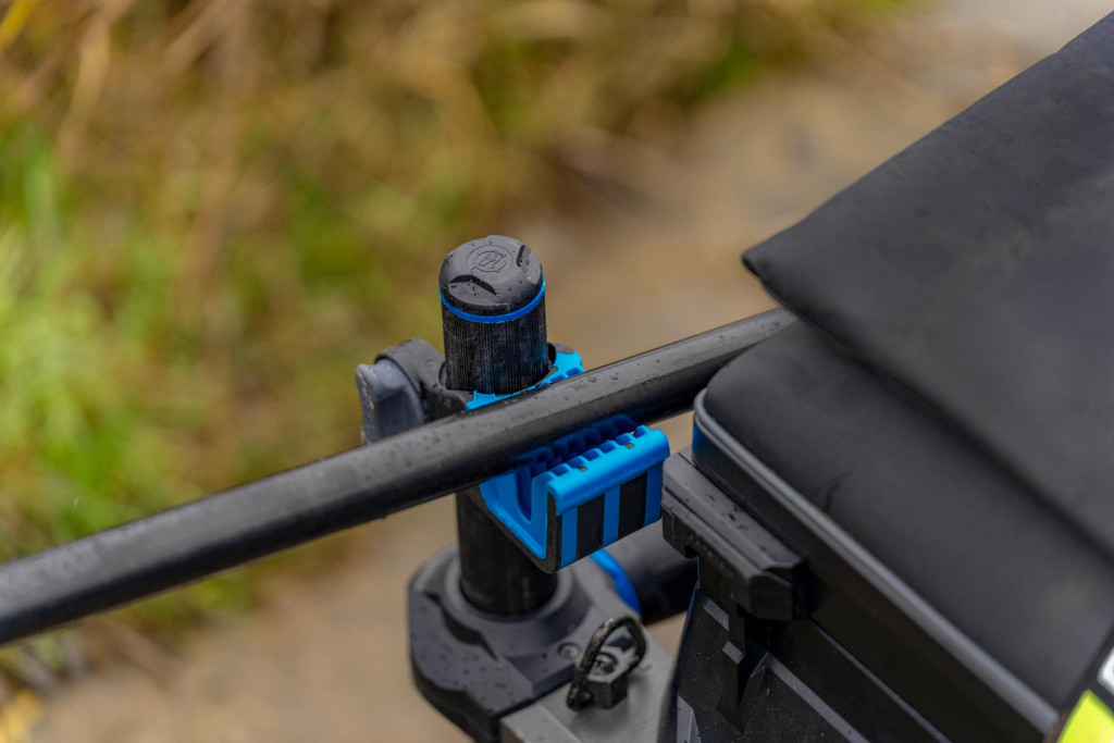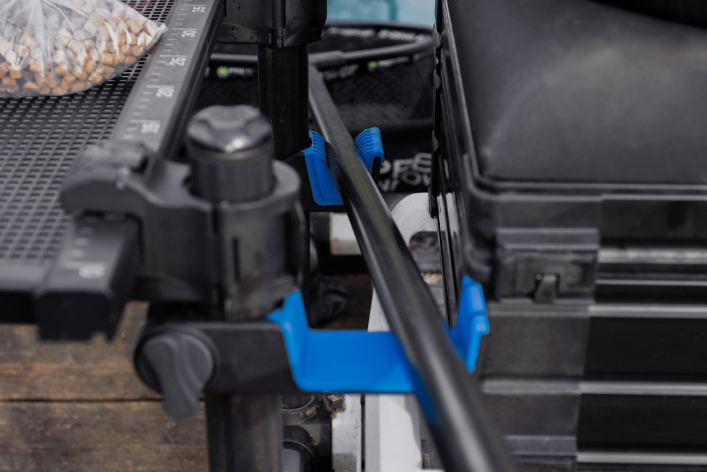 Die Vielseitigkeit des Zubehörs zeigt sich darin, dass die zwei Halter in beide Richtungen am Rahmen platziert werden können. Diese Lösung bietet dem Benutzer große Freiheit, da der Kescher je nach Position an der Angelbox oder dem Feederstuhl weiter vorne oder weiter hinten befestigt werden kann. Der Aufbau des Adapters gewährleistet die Kompatibilität mit den gängigsten Angelplattformen und macht ihn zu einem universellen Zubehör für moderne Feinangelgeräte.