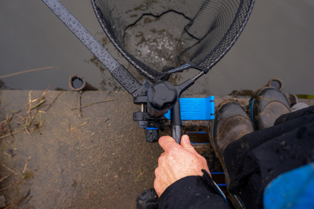 » Zweikomponenten-Befestigungssystem für die präzise und feste Positionierung des Kescherstiels.