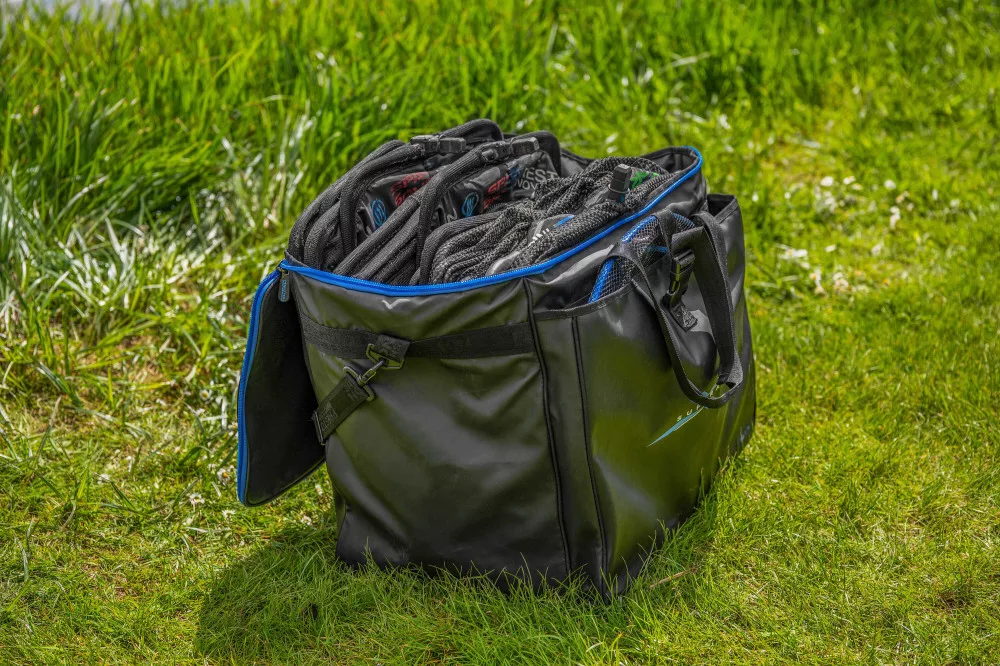 Die XL Setzkescher-Tasche ist für die Aufbewahrung von bis zu 5 Setzkeschern geeignet und erfüllt die Anforderungen moderner Wettkampfangler.