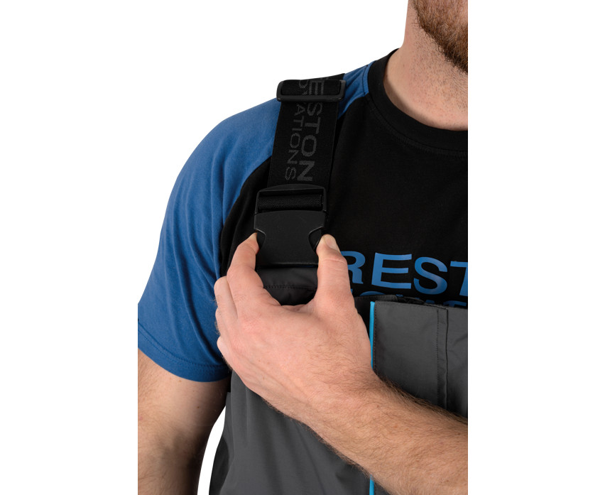 Die Länge schränkt die Bewegung beim Angeln im Sitzen überhaupt nicht ein. Hoher Kragen für maximalen Schutz vor den Elementen. Drei vollständig wasserdichte Taschen mit großer Kapazität. Verstärkte Knie- und Gesäßpartie, um vorzeitigem Verschleiß vorzubeugen. Vollständig wasserdichte Reißverschlüsse mit Sturmleisten und Zuglaschen. Weit öffnende, verstellbare Knöchel. Breite, verstellbare Schultergurte.