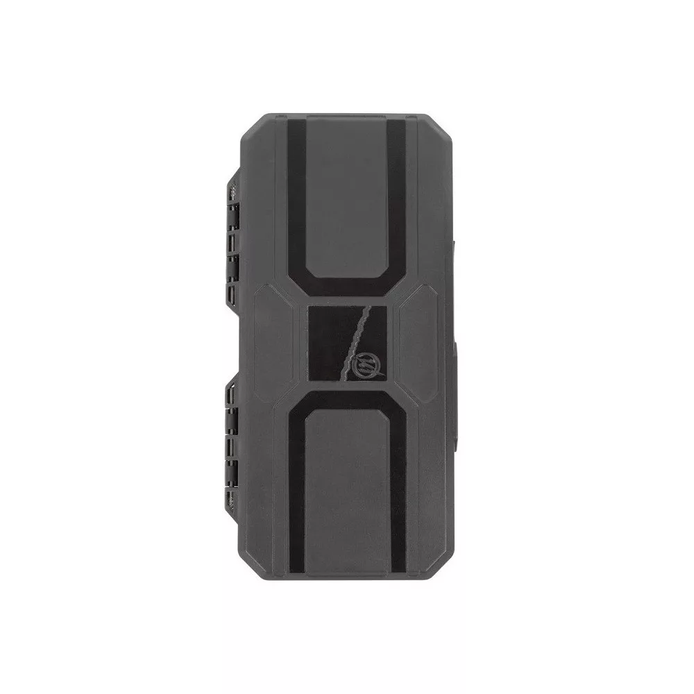 Der praktische Magnetverschluss und die verstärkten Eckriemen gewährleisten ein einfaches und schnelles Öffnen und Schließen und erhalten gleichzeitig die lange Lebensdauer der Box. Das clever gestaltete Stiftsystem im Inneren ermöglicht die Befestigung von Vorfächern mit einer Länge von 10 cm, 12,5 cm und 15 cm, sodass diese stets ordentlich und sicher platziert werden können. Eine der Stiftreihen ist etwas höher, um das Binden der Vorfächer zu erleichtern, sodass Sie kein separates Werkzeug für präzises Hakenbinden benötigen. Die Stifte sind mit einer erhöhten Halterung versehen, sodass die Vorfächer stabil an ihrem Platz bleiben und nicht versehentlich abspringen.
