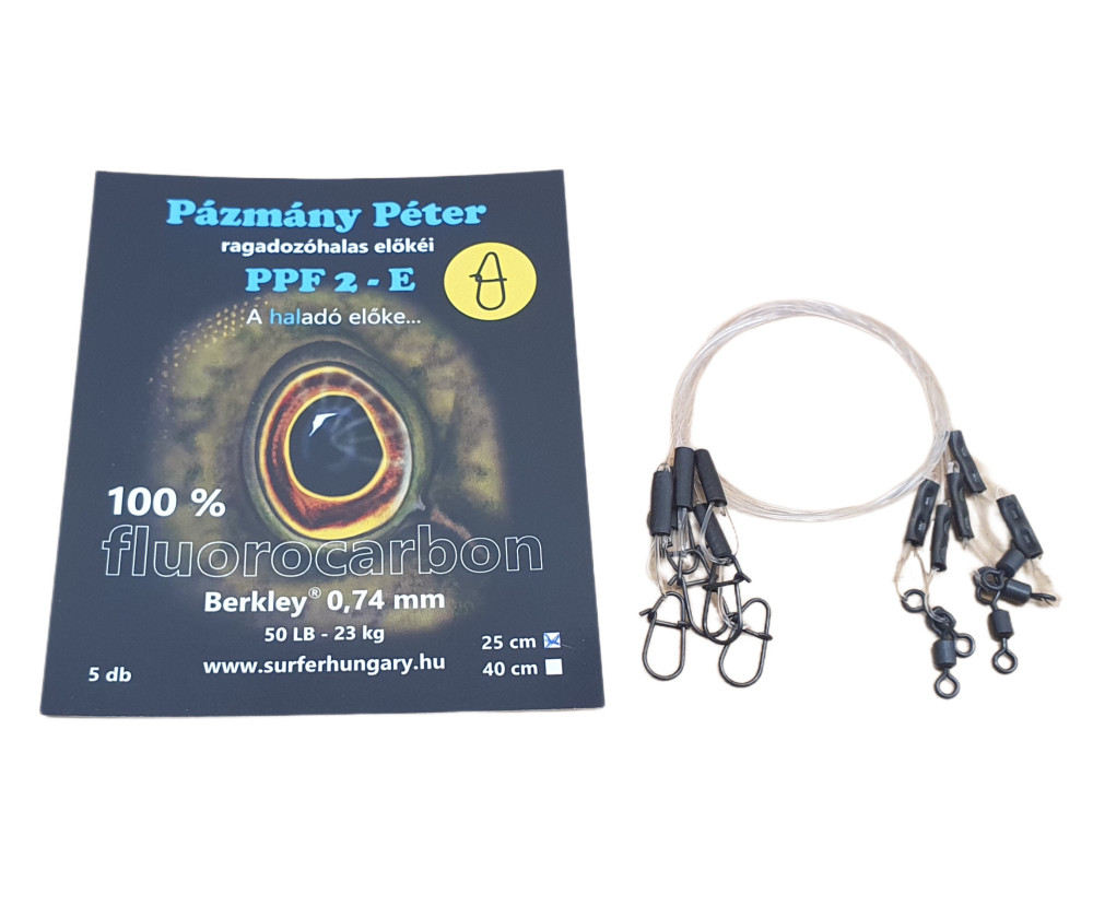 Die Fluorocarbon-Vorfächer für Raubfische sind in der ungarischen Spinnfischergemeinschaft bekannt und geschätzt. Ausschließlich mit einwandfreien Qualitätsrohstoffen von amerikanischen Berkley (Berkley Big Game Trilene 100% Fluorocarbon) und hochwertigen Komponenten ausgestattet.