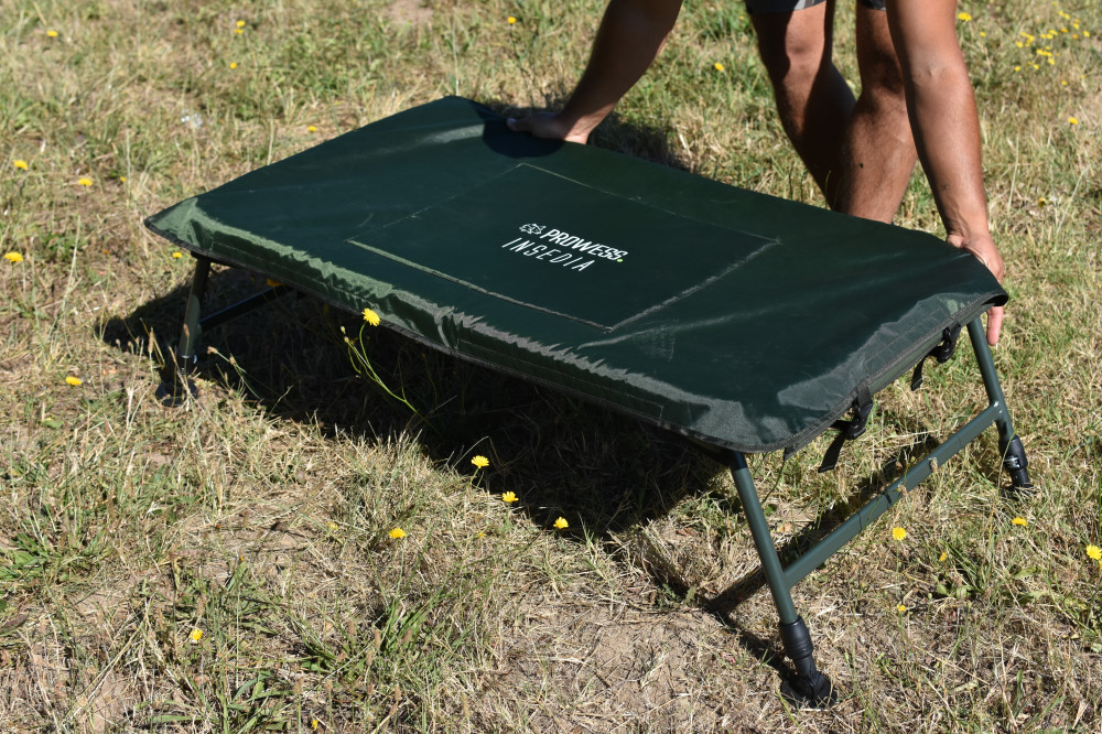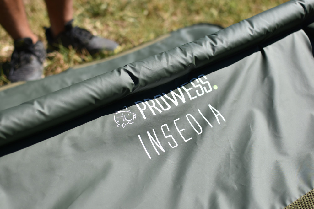 Die Prowess INSEDIA ist eine High-End-Karpfen-Abhakmatte, die aus extrem starken und haltbaren Materialien gefertigt ist. Die Wasserabläufe an der Abhakmatte ermöglichen eine reichliche Befeuchtung des Fisches, ohne dass das Wasser bei Bewegung des Fisches herausspritzt. Sie ist sehr steif, lässt sich aber dennoch leicht zusammenklappen, quasi wie ein Koffer. Die vier verstellbaren Beine ermöglichen einen stabilen Aufbau auf jedem Gelände. Eine weitere positive Eigenschaft dieser großartigen Abhakmatte ist die Abdeckplane, die den "Fang" verdeckt, während wir uns anderen Dingen zuwenden, ein gutes Beispiel hierfür ist das Holen des zum Befeuchten benötigten Wassers.