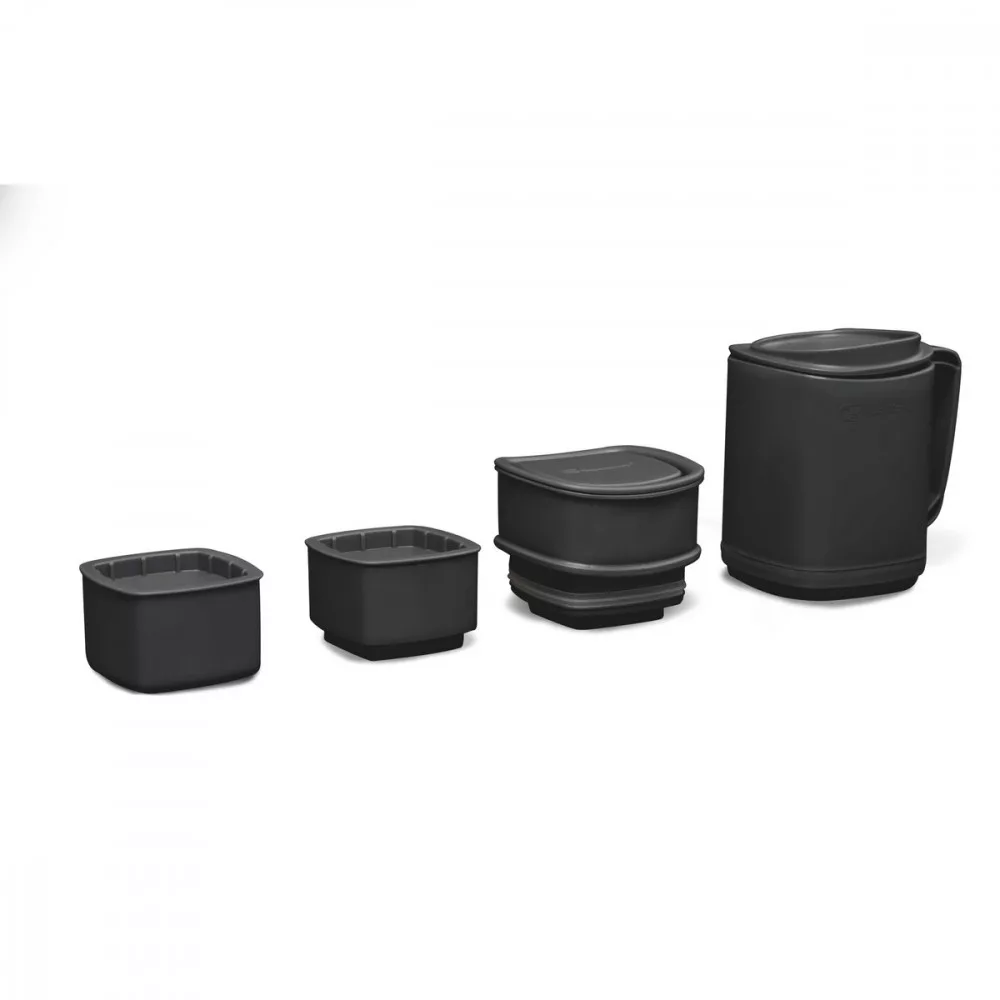 Das Set enthält 3 vollständig wasserdichte Behälter, die perfekt in den ThermoMug passen und grundlegende Zubehörteile wie Kaffee, Tee oder Zucker aufnehmen können.