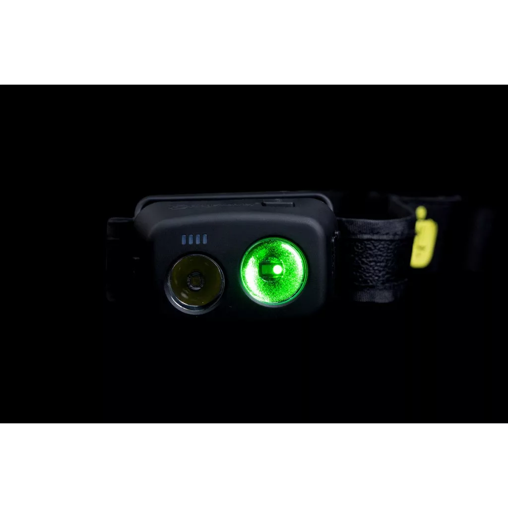 Die Ladezeit der Stirnlampe beträgt etwa 1 Stunde 40 Minuten, und die Akkulaufzeit variiert je nach gewählter Farbe und Modus zwischen 4 und 670 Stunden. Die Geräteabmessungen betragen 40 × 60 × 50 mm (ohne Gurt), und die Länge des vollständig flexiblen Gurtes ist zwischen 50–65 cm einstellbar.