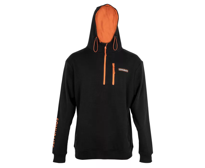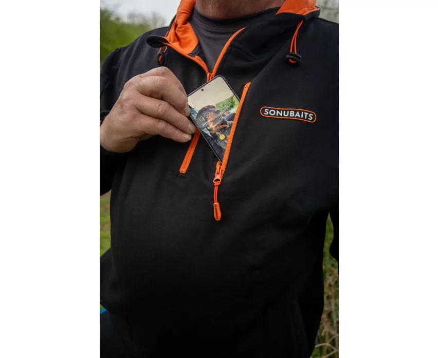 Das Sonubaits 1/4-Reißverschluss-Kapuzenpullover mit Handytasche ist die perfekte Wahl für jeden Angler, der Stil und Komfort in einem sucht. Der schwarze Hoodie aus weichem, strapazierfähigem Material wird durch leuchtend orangefarbene Details aufgelockert – die Innenkapuze und die Taschen sorgen für einen auffälligen Farbkontrast. Das große Sonubaits-Logo auf der Rückseite macht deutlich: Du nimmst das Angeln ernst. Ob am Wasser oder zu Hause, dieser Hoodie hält warm, ist stilvoll und für jede Situation bereit. Ein Muss für jeden Sonubaits-Fan, der seiner Angelausrüstung etwas Besonderes verleihen möchte!