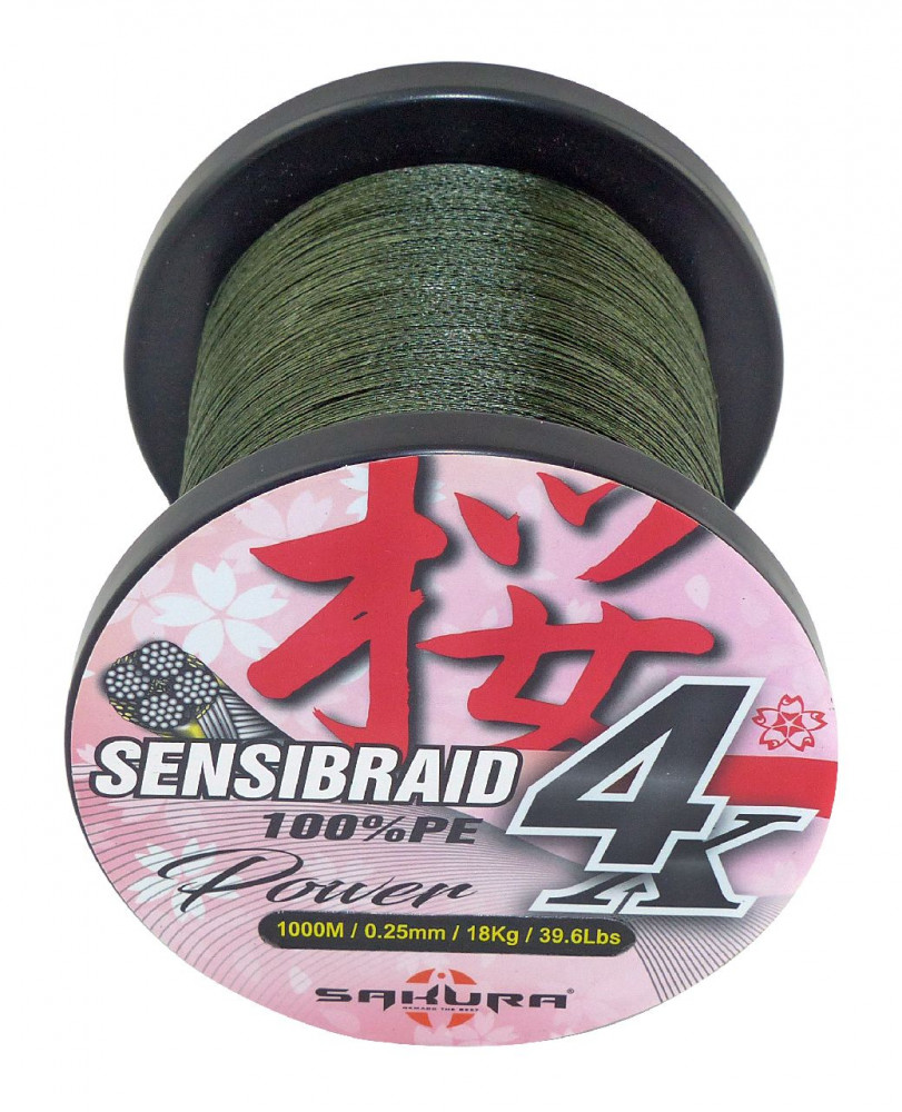 Sakura Sensibraid 4 geflochtene Schnur - GREEN 1000 M - 0.50 mm / 60Kg / 132Lbs