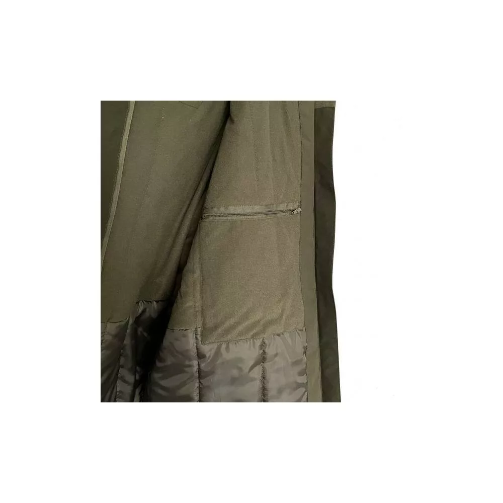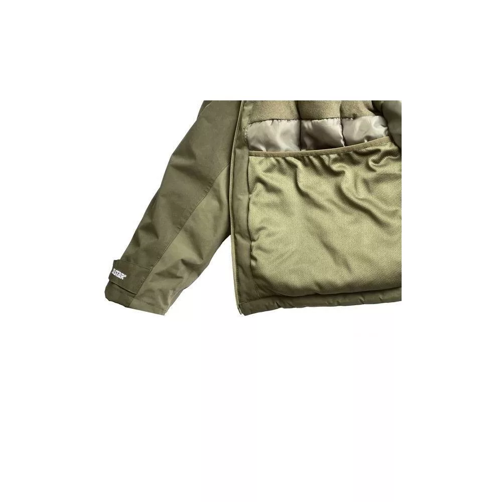 Bei Thermokleidung ist neben der Gewährleistung eines angemessenen Wärmegefühls auch die Wasserbeständigkeit wichtig. Natürlich enttäuscht das SILSTAR Thermoset auch in diesem Fall nicht! Das Basismaterial der Kleidung ist 100% hochabriebfestes TWILL PEACH Mikrofasergewebe aus Polyester, das eine besonders hohe Wasserbeständigkeit aufweist. Die Jacke und die Latzhose sind mit einer 8000/800 MVP PVC-Membranbeschichtung versehen, und jede einzelne Naht ist zusätzlich verklebt. Dank der oben genannten Parameter und Eigenschaften ist die SILSTAR EXCLUSIVE LINE Kleidung vollständig wind- und wasserdicht! Die Taschen an der Jacke, insgesamt drei Stück, haben ebenfalls den entsprechenden Schutz erhalten, so dass auch diese 100% wasserdicht sind. Natürlich sind alle Reißverschlüsse wind- und wasserdicht! Was nützt eine 100% wasserdichte Thermokleidung, wenn sie nicht bequem und praktisch ist! Auch hier gibt es keinen Grund zur Sorge, denn der Kragen der Jacke ist hoch und bietet somit perfekten Schutz vor Wind. Außerdem gibt es am Kapuzenbereich ebenfalls einen Kragen, der dank der Klettverschluss-Ergänzung doppelten Schutz bietet. Um das Wärmegefühl zu erhöhen, kann die Jacke an mehreren Stellen individuell angepasst werden. Der Taillenbereich der Jacke wird durch ein elastisches Innenband am Körper gehalten. Diese Eigenschaft werden wir besonders bei häufigen Positionswechseln während des Angelns schätzen, da im Wesentlichen kein Wind und keine Kälte unter die Jacke gelangen kann.
