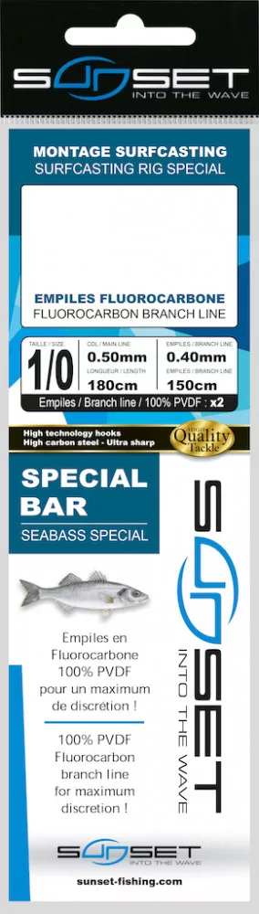 Sunset - BDL SURFCASTING RS COMPETITION SPECIAL BAR / FLUORO 2X150 N1/0 - Vorfach - Meeresvorfach