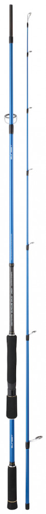 Dazu gehört eine Sunfish Rolle mit ABS-Gehäuse, mikrometrischer Frontbremse, Multi Stop Rücklaufsperre und einer überdimensionierten Schnurführung, um die Entstehung von Schnurverwicklungen weitestgehend zu reduzieren. Hervorragend geeignet für das Küsten- und Bootsangeln.