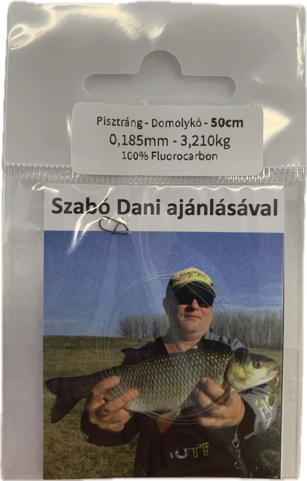Der Packungsinhalt: 1 Stück Dani Fluorocarbon Vorfach Forelle-Döbel 0,185mm, 3,210kg 50cm.