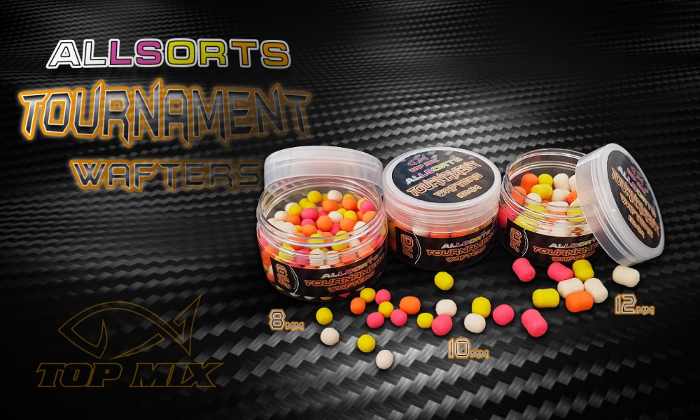 Top Mix Allsorts Tournament Wafters sind lösliche Pellets, die auf langjähriger Wettkampferfahrung basieren und die am häufigsten beim Angeln verwendeten Farben in einem Behälter enthalten.