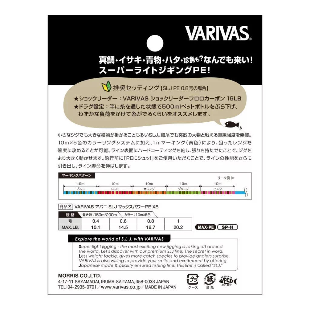 Varivas Avani SLJ Super Light Jigging Max Power PE X8 150m #0,6 14,5lb Geflochtene Hauptschnur detaillierte Beschreibung