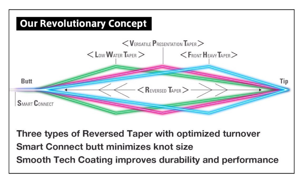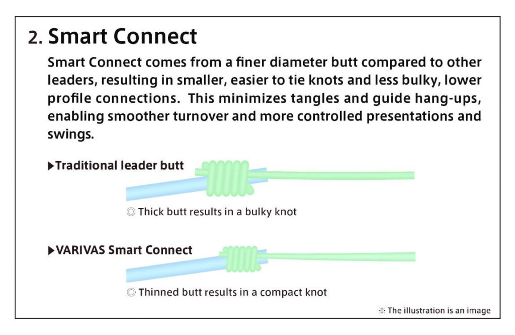 Das Varivas IWI FHT verjüngte Vorfach verfügt über ein sorgfältig konzipiertes Profil, das eine optimale Energieübertragung von der Fliegenschnur zu unserem Köder gewährleistet. Dadurch können wir selbst die feinsten Fliegen mühelos und präzise platzieren, selbst in der Nähe der vorsichtigsten Fische.