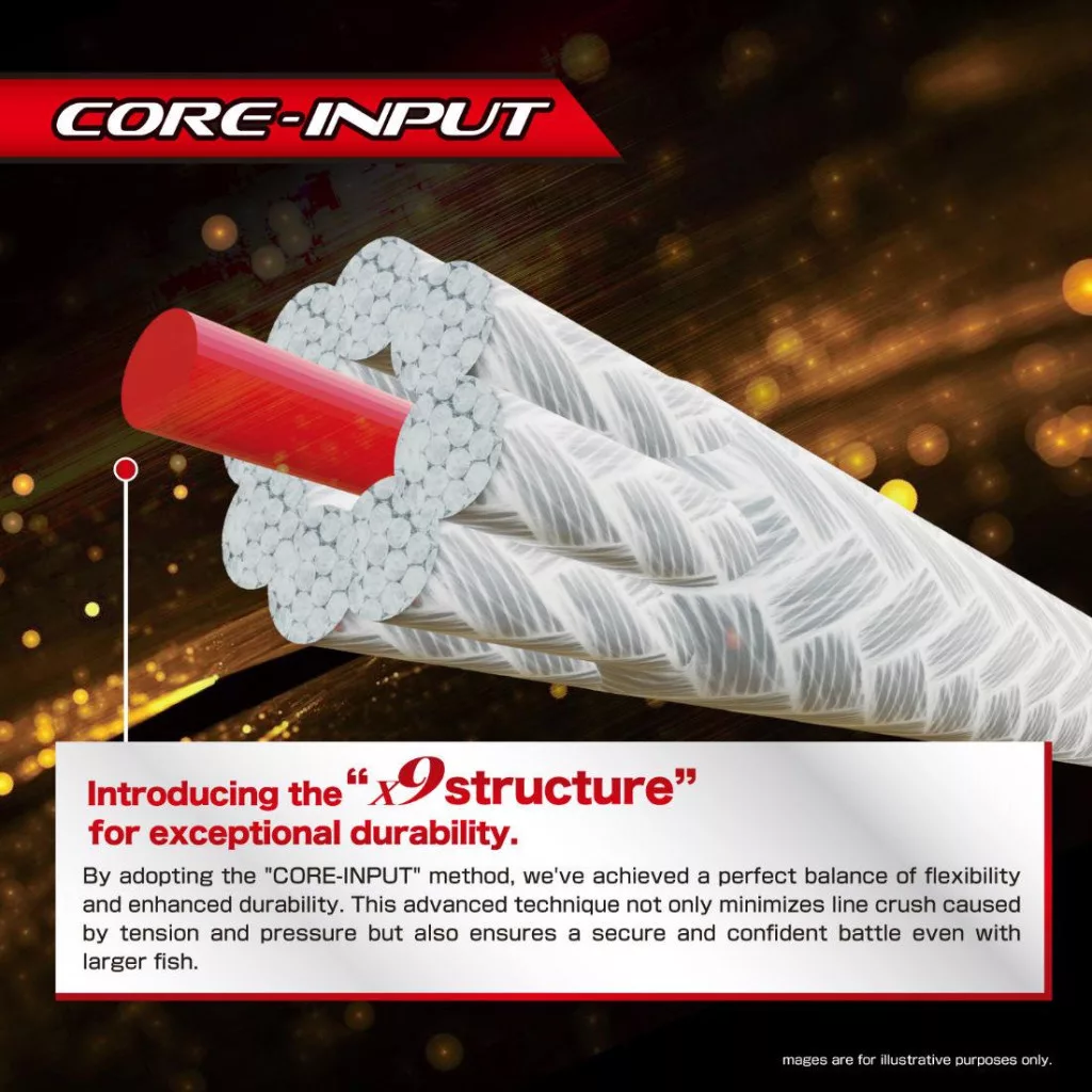 Die außergewöhnliche Dichte und Glätte des X9-Geflechts sorgt für unübertroffene Zugfestigkeit und Abriebfestigkeit. Dieses 9-fädige Design minimiert die Reibung, ermöglicht extrem weite und präzise Würfe und widersteht gleichzeitig Unterwasserhindernissen und Bissen von Raubfischen. Spüren Sie den Unterschied bei jedem Wurf und Drill!