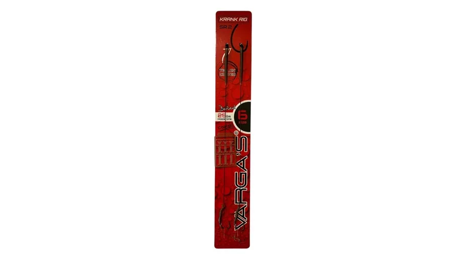 Lieferumfang:Vargas Krank Rig SR.2 mit 6 Ösen, mit Widerhaken, geflochtener 20cm vorgebundener Haken 2 Stk.
