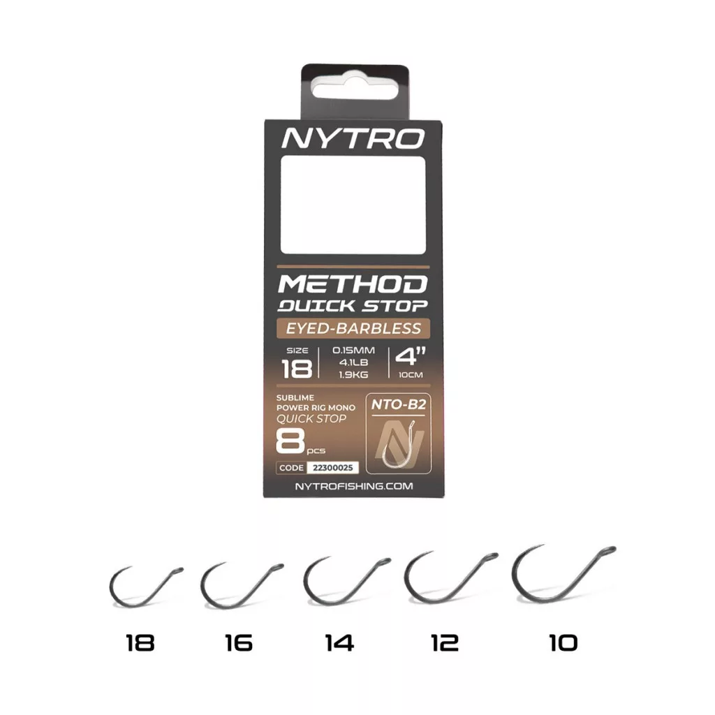 Entdecken Sie die Nytro NTO-B2 Quick-Stop vorgebundenen Haken, mit denen das Ködern noch nie so schnell und einfach war! Diese Premium-Haken garantieren ein erfolgreiches und angenehmes Angelerlebnis und sparen Ihnen Zeit am Ufer.