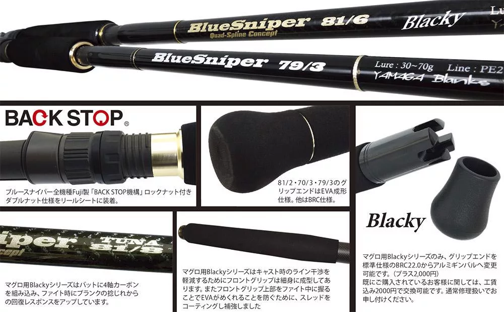 Yamaga Blanks Blue Sniper 81/8 Blacky Tuna 2,48m 45-120gr 2-teilige Spinnrute detaillierte Beschreibung