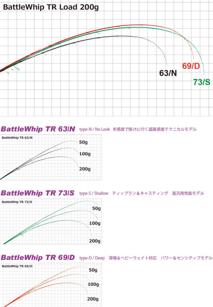Die "Battle Whip TR" Serie ist ein "aggressives" Tip-Run-Modell, das das Handling von Egi mit dem gleichen Gefühl wie beim leichten Angeln ermöglicht, während es mit seiner sensiblen und hochempfindlichen Leistung auch die kleinsten Bisse wahrnimmt. Die Spitze reagiert präzise in den Momenten des Falls, des Zuckens und des Stopps, gewährleistet eine reibungslose Köderführung und ermöglicht mit ihrer geschärften Leistung selbst in schwierigen Situationen ein angenehmes Spiel.