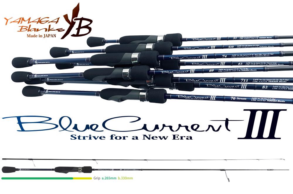 Diese Serie repräsentiert die Hauptrichtung der Light Game Linie von Yamaga Blanks. Zu den Zielen der BlueCurrent III gehören ein breiterer Wurfpunkt, der das Werfen erleichtert, eine nahtlose Biegung, die den Spannungsverlust verhindert, und eine Verlängerung der Anglerhand für schnellere Reaktionen.